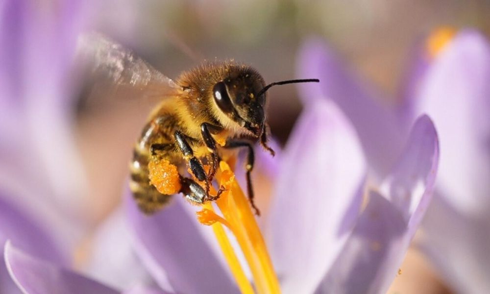 También las abejas anuncian a llegada de la primavera. Esta, por ejemplo, colecta el néctar de un azafrán en un parque de Hamburgo (Especial).
