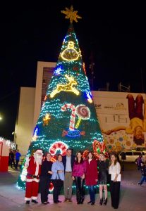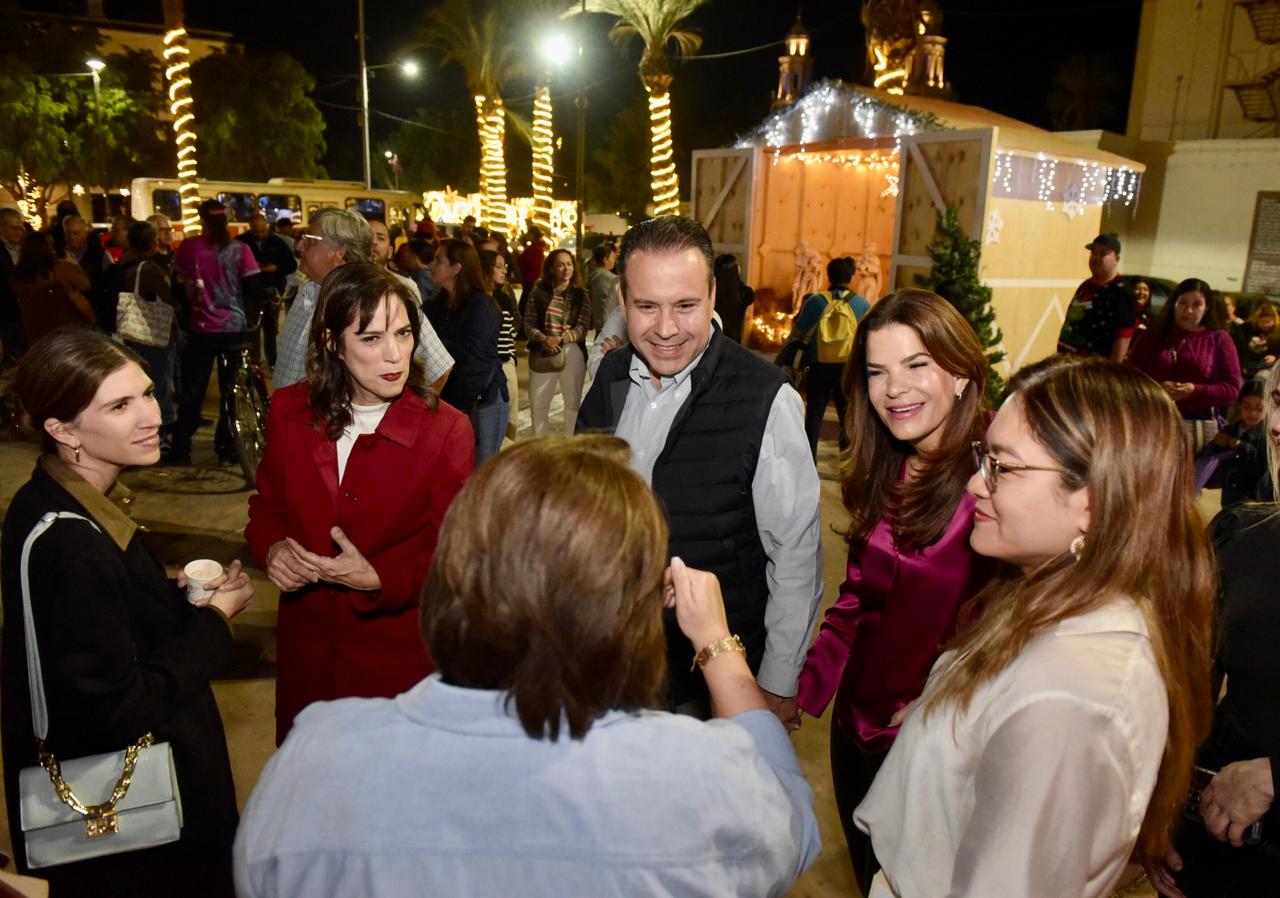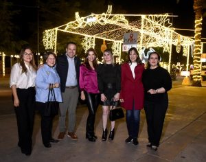 A partir de las 6:30 p.m. el Presidente Municipal inició el sistema de iluminación del segundo árbol con luces, velas gigantes, trineo con reno, un nacimiento, Santa Claus y cabañas durante esta tradicional celebración en el Centro Histórico de Hermosillo.