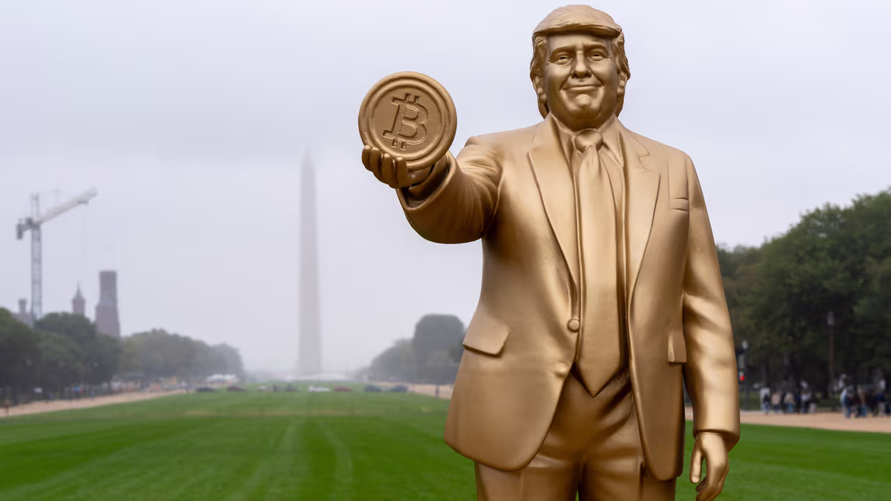 Quienes pusieron la estatua explicaron es “un homenaje a la defensa vocal de Donald Trump de las criptomonedas y sirve como una declaración provocativa sobre el panorama cambiante de las finanzas digitales”.