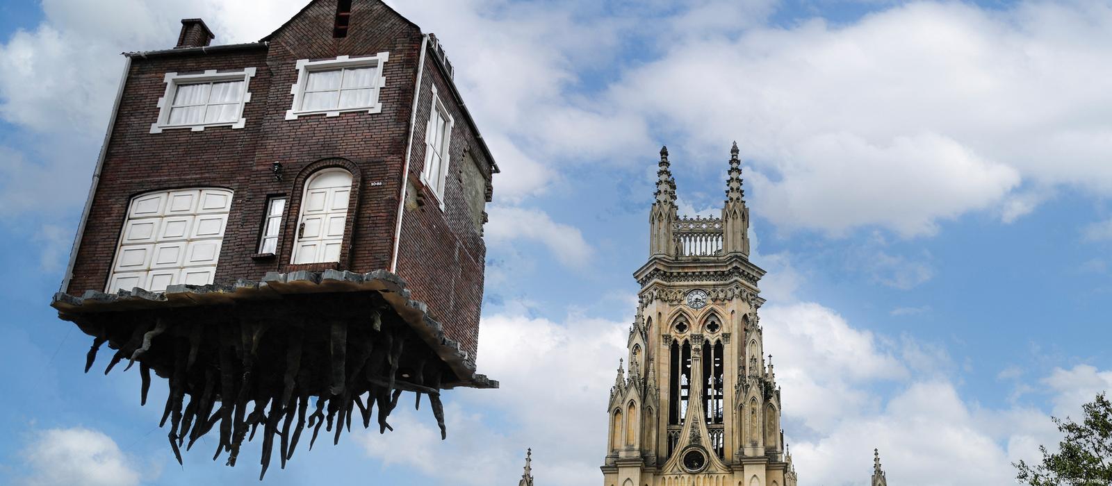 La BOG25, la edición de este año de la Bienal Internacional de Arte y Ciudad que se celebra en Bogotá hasta el 9 de noviembre, sorprende con instalaciones como esta del artista argentino Leandro Erlich, titulada “Arrancada de raíz” y situada en el Parque Lourdes. Veinte espacios repartidos por la capital colombiana invitan a mirar la ciudad y su arquitectura con otros ojos (AFP).