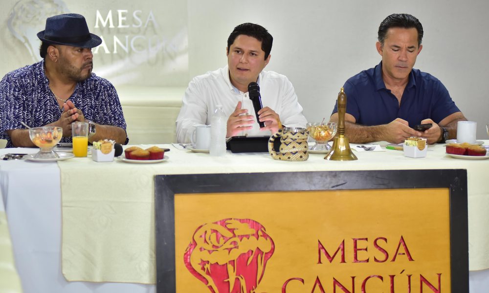 El titular de la dirección de Crédito Educativo y Becas del Estado de Sonor, Abraham Sierra, en entrevistaa con intehrantes de la Mesa Cancún, exponiendo detalles...