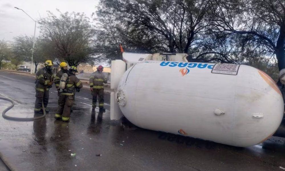 Hermosillo, Sonora.- Una pipa de gas de la empresa Pagasa volcó la tarde de este sábado sobre el bulevar Enrique Mazón López, a la altura de...