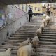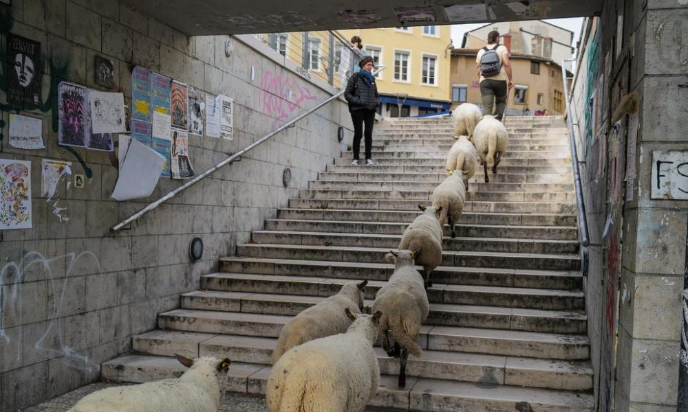 Un grupo de ovejas son pastoreadas durante una trashumancia a través de las calles de Lyon y sus alrededores, organizada por la asociación La Bergerie Urbaine...