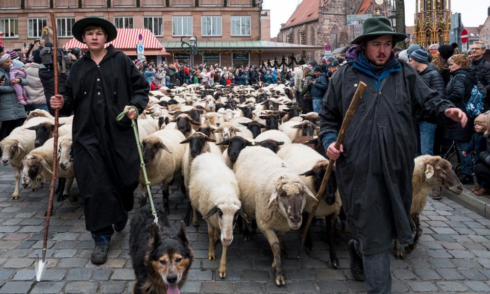 Los habitantes de Nuremberg captan la inédita imagen de dos pastores que trasladan a sus ovejas por el centro de la ciudad para conducir a los...