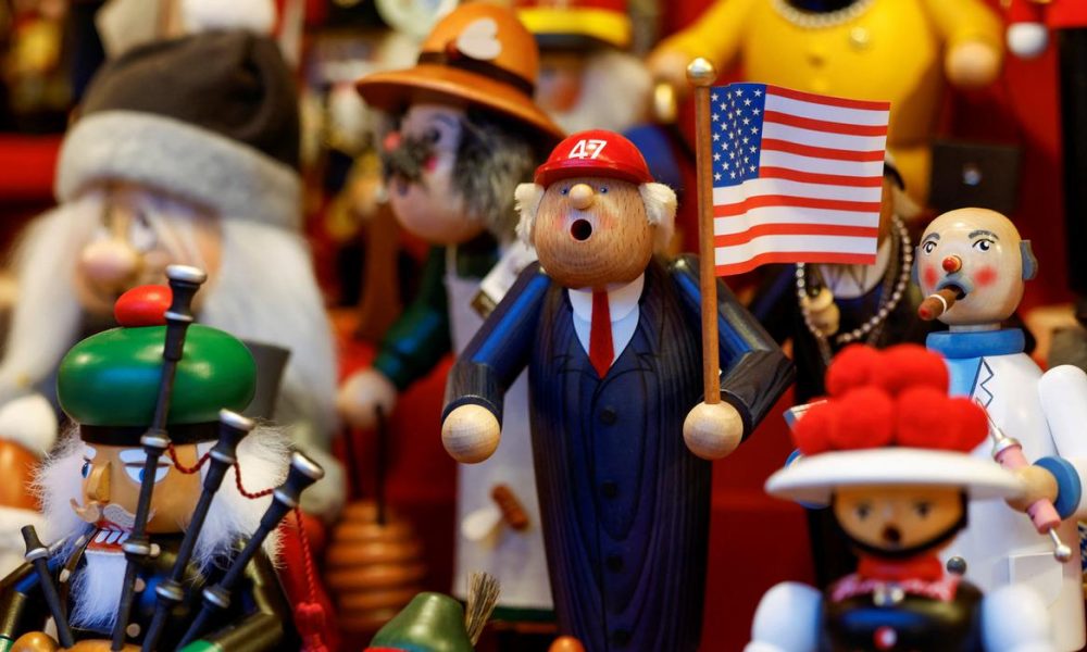 Un sujetador de incienso del presidente de Estados Unidos, Donald Trump, se exhibe en el famoso Nuernberger Christkindlesmarkt (mercado del Niño Jesús), uno de los mercados...