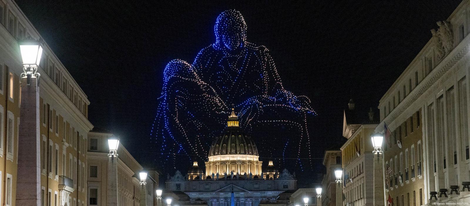 El compositor estadounidense Pharrell Williams y el tenor italiano Andrea Bocelli dirigieron hace unos días un concierto gratuito en la Plaza de San Pedro del Vaticano, acompañados de otros artistas y de 3 mil 500 drones, encargados del espectáculo de luces. Estos formaron en el cielo sobre la cúpula de San Pedro imágenes como la de la Piedad de Miguel Ángel (en la imagen) o detalles de la Capilla Sixtina (Reuters)