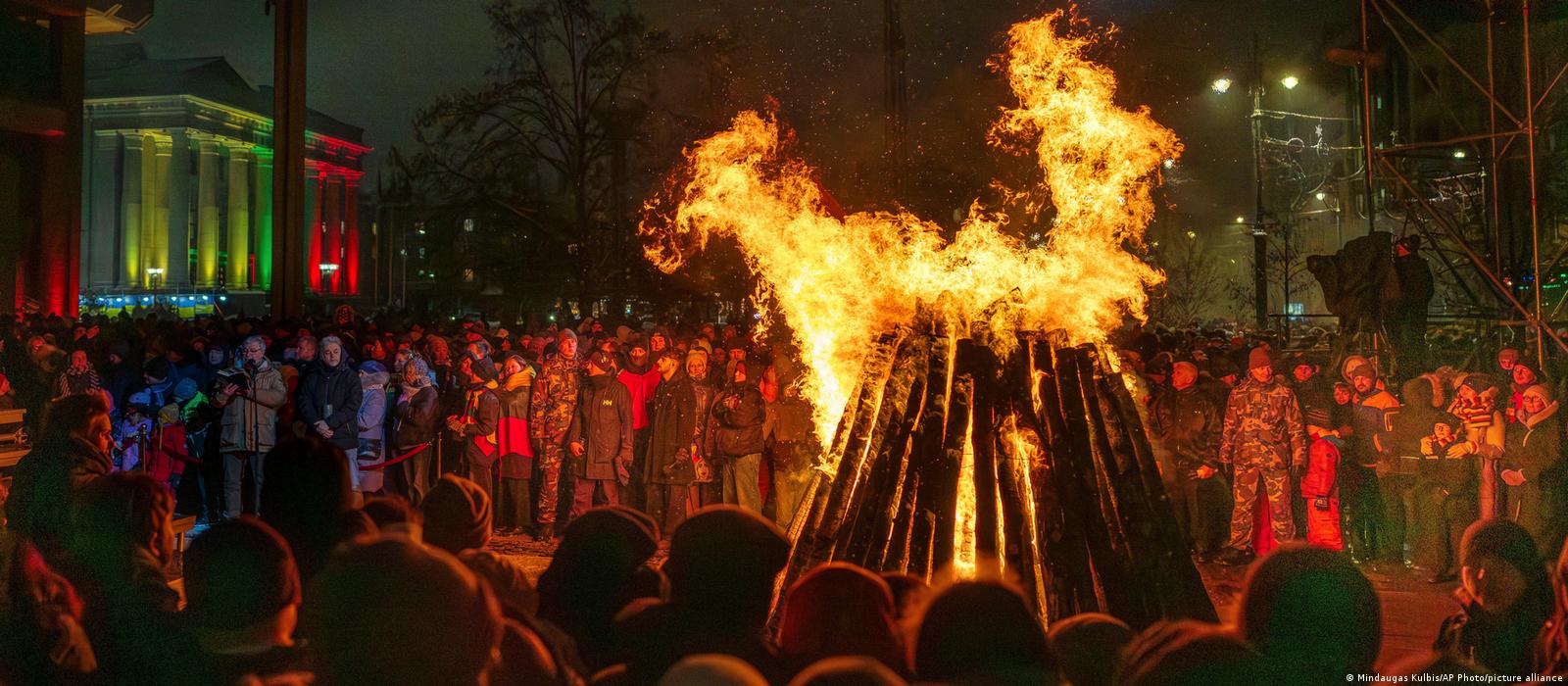 Una hoguera se eleva en la plaza de la Independencia, en el aniversario 35 del Día de los Defensores de la Libertad, en Vilna, Lituania. Los lituanos conmemoran las 14 personas que murieron cuando tropas y tanques soviéticos atacaron a una multitud de manifestantes frente a una torre de televisión el 13 de enero de 1991, en un intento de sofocar la lucha por la independencia del país báltico (Especial).