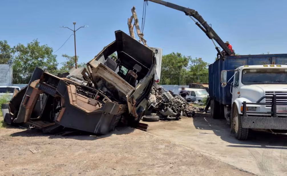 Reynosa, Tamaulipas.- La Fiscalía General de la República (FGR) en cumplimiento con el Programa “Destino de Bienes y Objetos del Delito”, destruyó 23 vehículos con blindaje artesanal de los denominados “monstruos”.