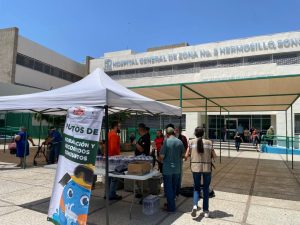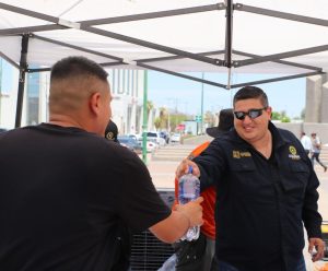 Protección Civil Sonora entrega 300 litros de agua y suero oral en puntos de hidratación instalados en el Centro de Gobierno y en el Hospital del IMSS Zona 2 en Hermosillo
