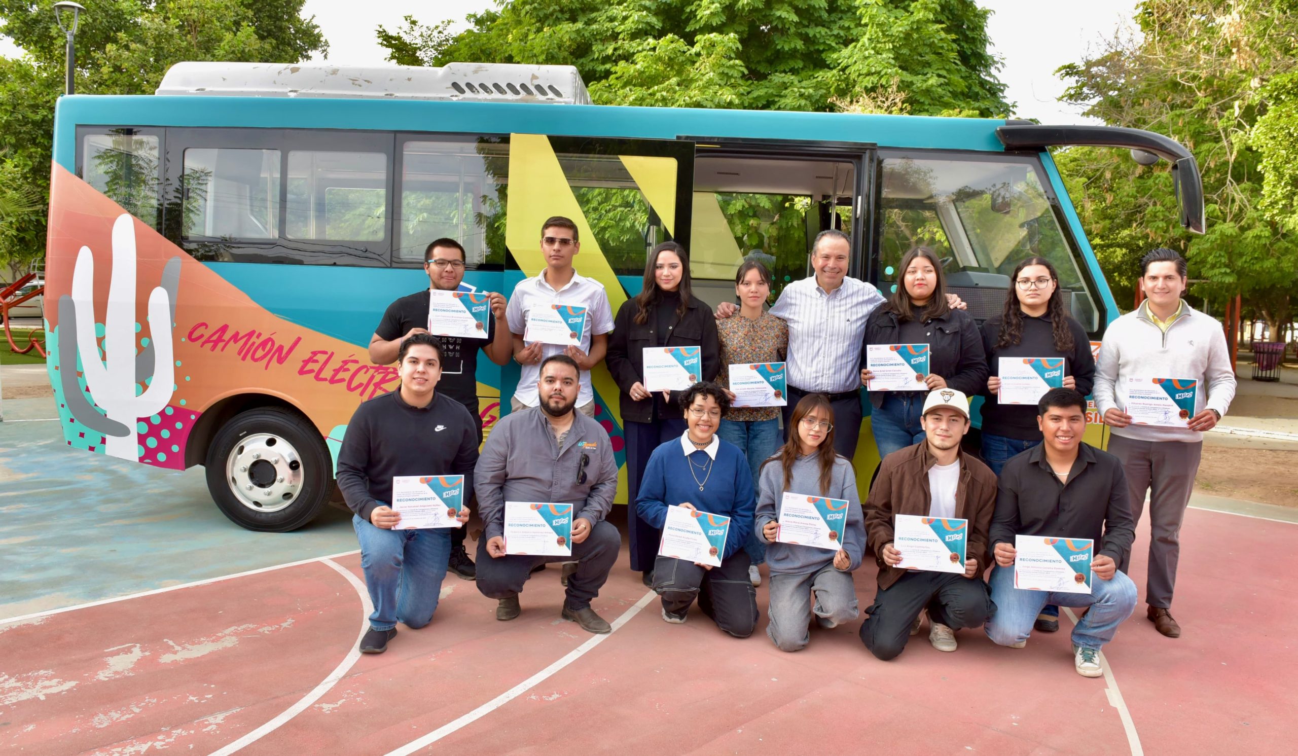Hermosillo, Sonora; 1 de diciembre, 2024.- Un grupo de 17 jóvenes beneficiados son los que integran el Comité de Transparencia y Eficiencia del Transporte Escolar Gratuito H Bus que vigilarán la operatividad, eficiencia y transparencia del transporte eléctrico gratuito HBUS.