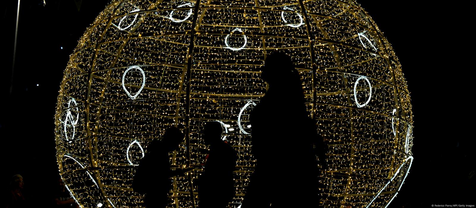 Ya estamos en octubre, así que es tiempo de Navidad en Venezuela. Por órdenes del presidente Nicolás Maduro, las celebraciones comienzan en el país sudamericano casi tres meses antes de la fecha que conmemora el nacimiento de Jesús. En la imagen, varias personas pasan frente a un adorno navideño instalado en Caracas (AFP).