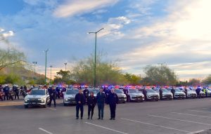 Junto con Manuel Emilio Hoyos Díaz, Comisario General de la Policía Preventiva y Tránsito Municipal, mandos medios y agentes preventivos y de Tránsito, Toño Astiazarán agradeció a todas y todos en la corporación por los buenos resultados de su trabajo, que proyectan a Hermosillo como la ciudad más segura de Sonora y la capital del país con mayor reducción de la percepción de inseguridad.