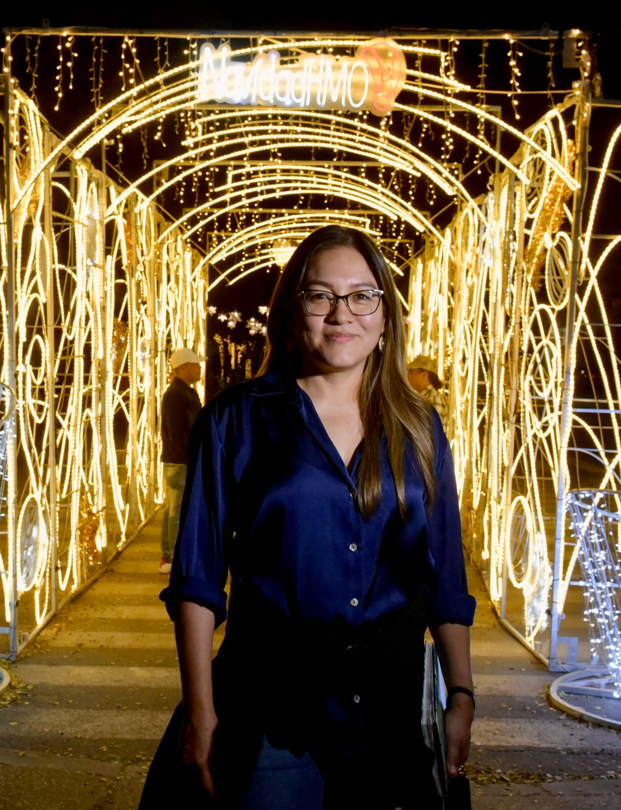 La directora de la AMECC, Carla Neudert Córdova supervisó los trabajos que ofrecerán un espectáculo para las familias con un árbol de diez metros de longitud a espaldas del Cerro de la Campana y una Villa Navideña con ocho cabañas con diversas temáticas.