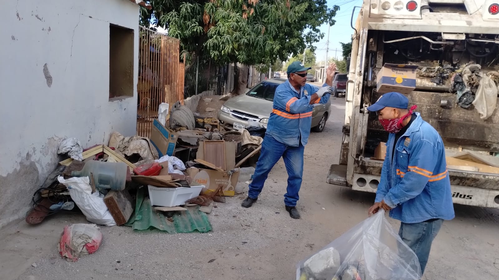 Personal de Servicios Públicos Municipales y de DIF Hermosillo acudió desde temprana hora a atender el sector, donde recogieron calle por calle muebles, artículos en desuso y cacharros que las y los habitantes colocaron en las banquetas.