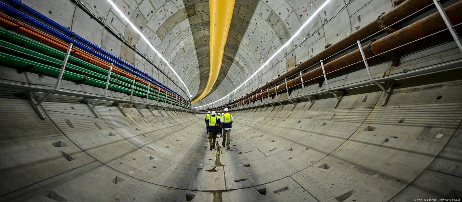 Un grupo de trabajadores del Metro de Panamá recorren el túnel de la futura Línea 3, que pasa exactamente por debajo del Canal de Panamá. La extensión del trazado del tren subterráneo, una ambiciosa obra de ingeniería, beneficiará a los habitantes de la provincia de Panamá Oeste, y unirá Albrook con Ciudad del Futuro. Posteriormente se extenderá hasta el Distrito de Chorrera (AFP).