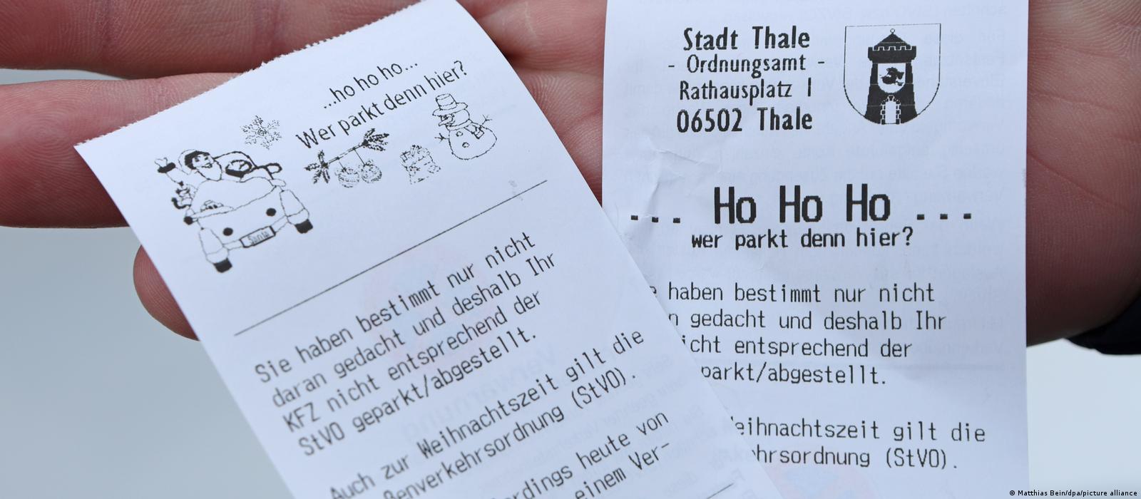“Ho, ho, ho… ¿mira quién ha aparcado aquí?”, se lee en las multas navideñas que muestra un funcionario municipal de la localidad de Thale, en Sajonia-Anhalt . La ciudad utiliza estas notificaciones desde 2019 para reducir el estrés previo a las festividades. “Seguro que no se ha dado cuenta”, continúa. “También en Navidades rige la normativa de Tráfico. Sin embargo, hoy no vamos a multarle” (Especial).