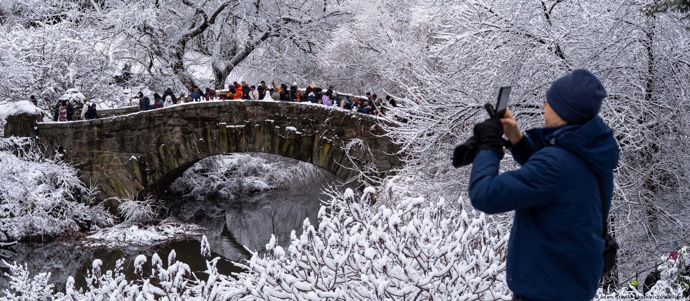 La gran zona verde de la isla de Manhattan se vio cubierta por un manto blanco, para deleite de los visitantes y de los fotógrafos, aficionados (como la de la foto) y profesionales, como Adam Gray que tomó esta instantánea para Associated Press. En ella, un grupo de personas cruza uno de los puentes de Central Park en medio de un sorprendente paisaje invernal (Especial).