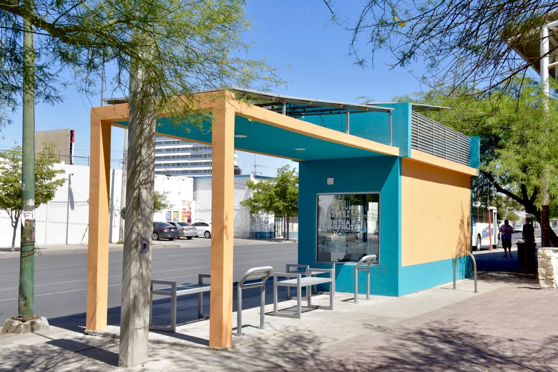 Hermosillo, Sonora.-Beneficios como videovigilancia 24/7, refrigeración, internet wifi, visualización de rutas en tiempo real, módulos de recarga de teléfonos móviles, entre otros beneficios cuentan las paradas funcionando del Gobierno de Hermosillo.