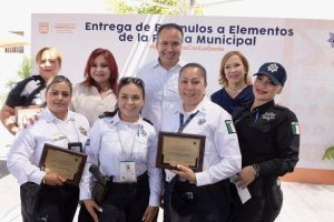 También entregó sus incentivos económicos a las 5 mujeres y hombres policías que se distinguieron por su buen desempeño en marzo y 5 más que se ganaron el distintivo de policía de abril del presente año.