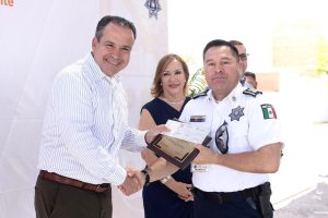 Lo acompañaron en la entrega de estímulos a policías municipales Manuel Emilio Hoyos, comisario general de la Policía Preventiva y Tránsito Municipal; Irma Laura Murillo Lozoya, contralora municipal; Zulma Galaz Angulo, regidora presidenta de la Comisión de Seguridad Pública del Cabildo; Félix Tonella Platt, presidente del Comité Ciudadano de Seguridad Pública de Hermosillo y Evangelina Contreras, del Patronato de Seguridad A.C.