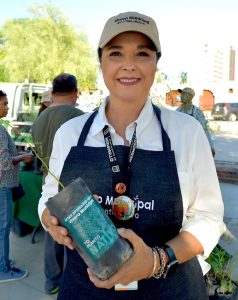 Amparo Fontanot, directora de Parques y Jardines del Ayuntamiento de Hermosillo encabezó este despliegue en el que personal del Vivero Municipal atendió a quienes respondieron a la invitación de contribuir a la mejora del ambiente a través de la forestación.