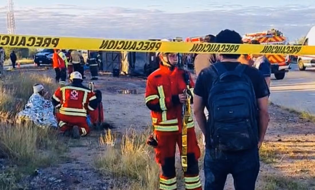 Hermosillo, Sonora.- Un autobús de pasajeros de la línea Tufesa volcó sobre la carretera internacional tramo Guaymas-Hermosillo kilómetros 234, con saldo preliminar de seis personas fallecidas y más de 15 lesionadas.