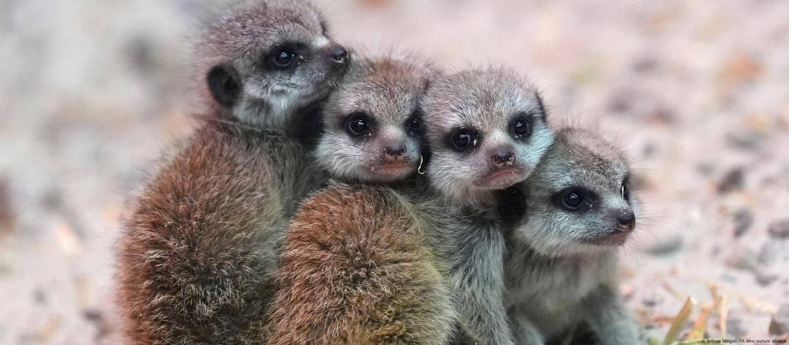 Estos cachorros de suricata fueron fotografiados al colocarse unos muy junto a los otros durante un evento con motivo de la celebración de Halloween, en el Parque Safari de Blair Drummond, en Escocia. Las suricatas son mamíferos, una de las mangostas más pequeñas que existen (Especial).