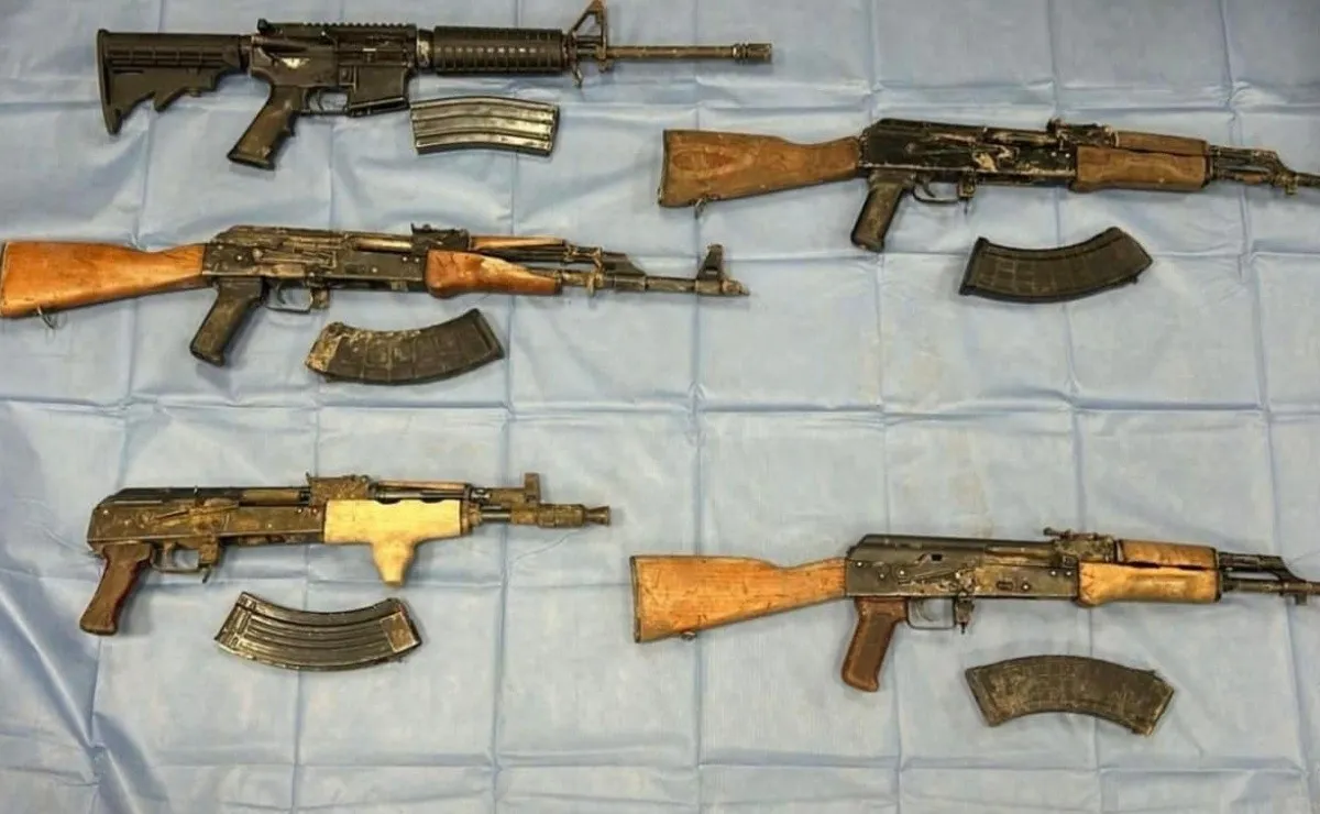 En el lugar de los hechos se aseguraron cuatro armas largas AK-47 conocidos como “cuernos de chivo” con varios cargadores, un arma larga tipo AR-15, calibre .223, también con cargadores.