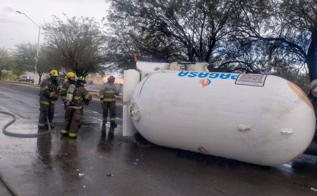 Vuelca pipa de gas en Hermosillo; evacuan hotel, viviendas y comercio
